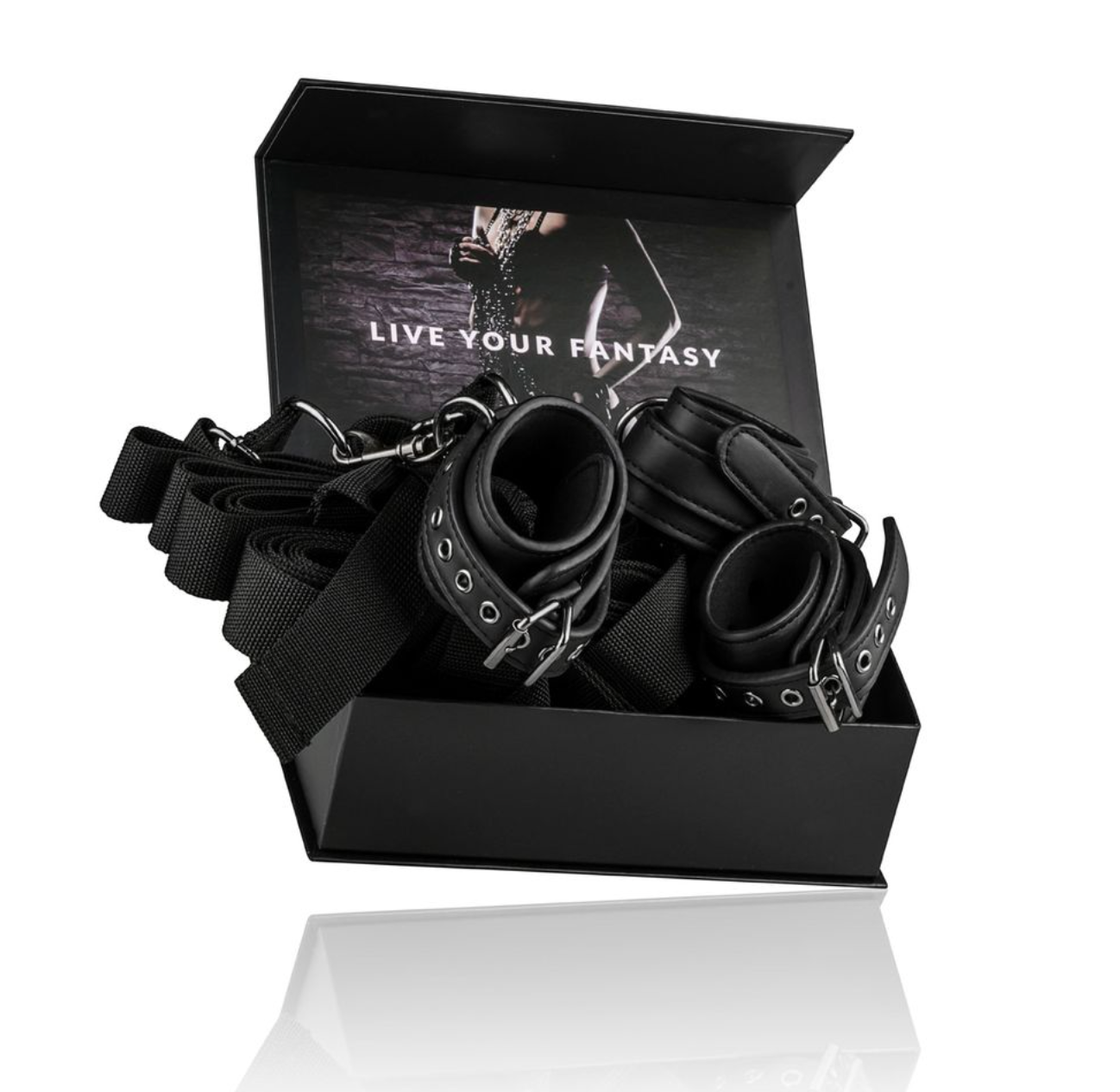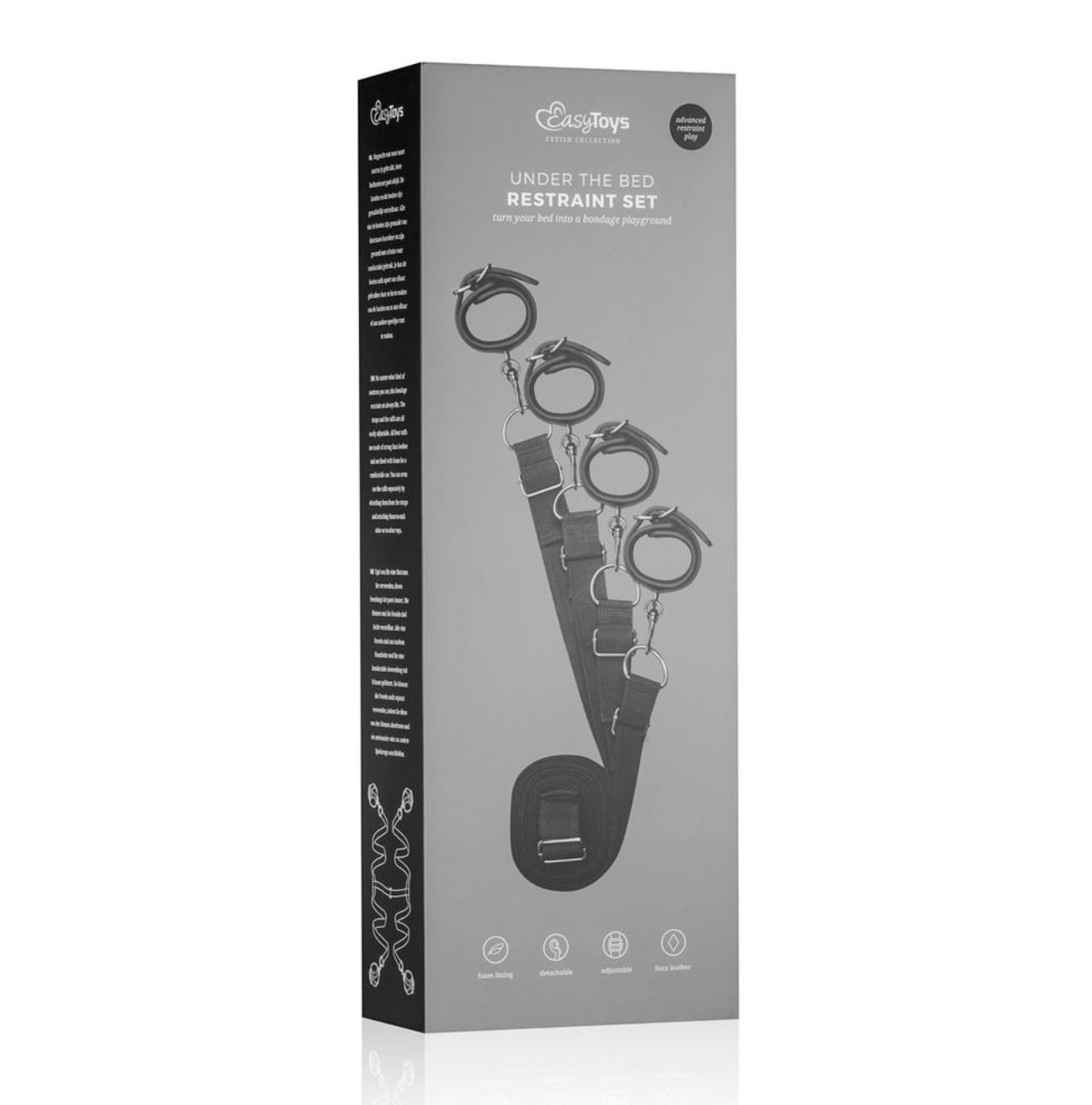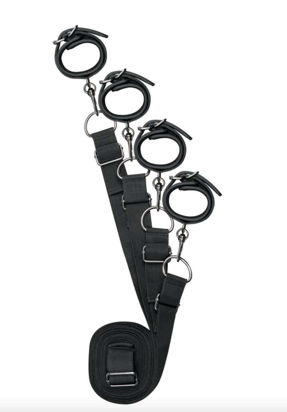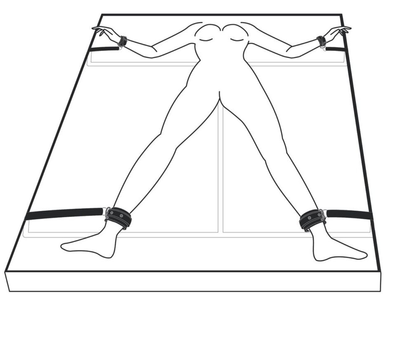 Gerðu bindingarleikinn enn meira spennandi með þessu setti sem geymt er undir dýnu. Settið er stillanlegt og passar því undir hvaða dýnu sem er. Settu settið undir dýnuna og láttu ólarnar sjálfar hanga út á hliðunum. Þá er auðvelt að binda niður bæði hendur og fætur leikfélaga þíns. Hægt er að stilla hverja og eina ól svo þær smellpassi. Ólarnar eru gerðar úr vönduðu og mjúku leðurlíki og eru einstaklega þægilegar.