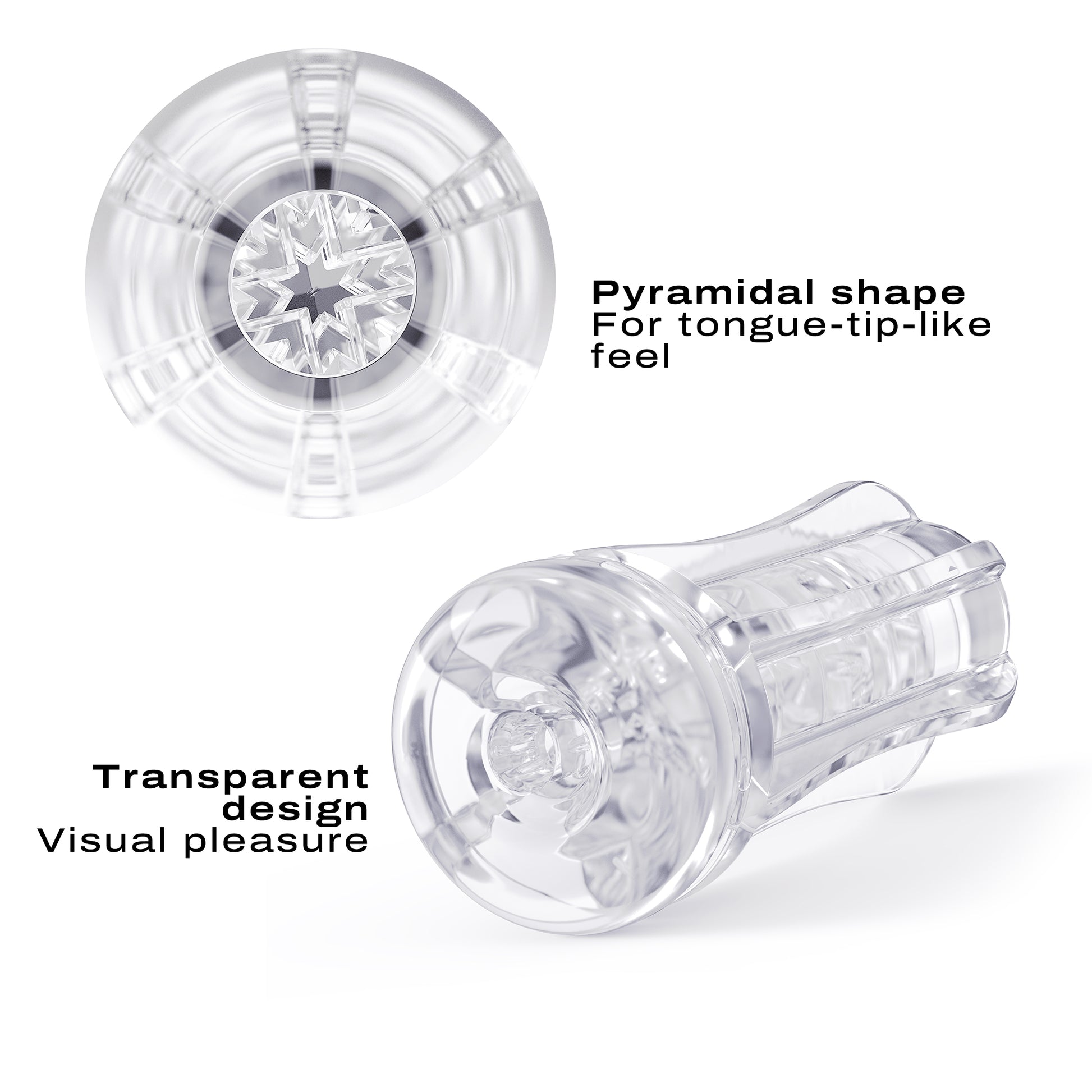 Deep Blow múffuermin er glær til að tryggja þér gott útsýni á meðan þú ert að njóta, og svo er hún þakin pýramídaformum fyrir unaðslega örvun.