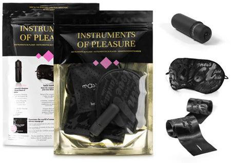 Instruments of pleasure er pakki sem inniheldur þrjú lykilatriði til að "spice-a up" kynlífið. Tilvalið fyrir pör sem vilja prófa nýja hluti og/eða eru að stíga sín fyrstu skref í bdsm.