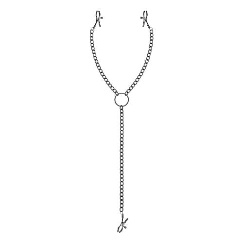 Þetta fjölhæfa klemmusett getur veitt tvöfalda unaðslega þjáningu. Svört keðja tengir saman stillanlegar geirvörtu klemmur, og klemmu sem hentar sérstaklega vel á sníp eða barma. Ekki skemmir fyrir að keðjan er falleg og ýtir undir lostafullt útlit meðan þú nýtur.