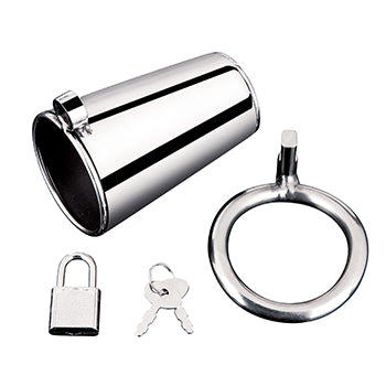 Typpabúrið er fest kyrfilega með aðskildum hring sem fer utan um eistun. Læstu búrinu örugglega með því að nota meðfylgjandi lás til að halda honum föstum.